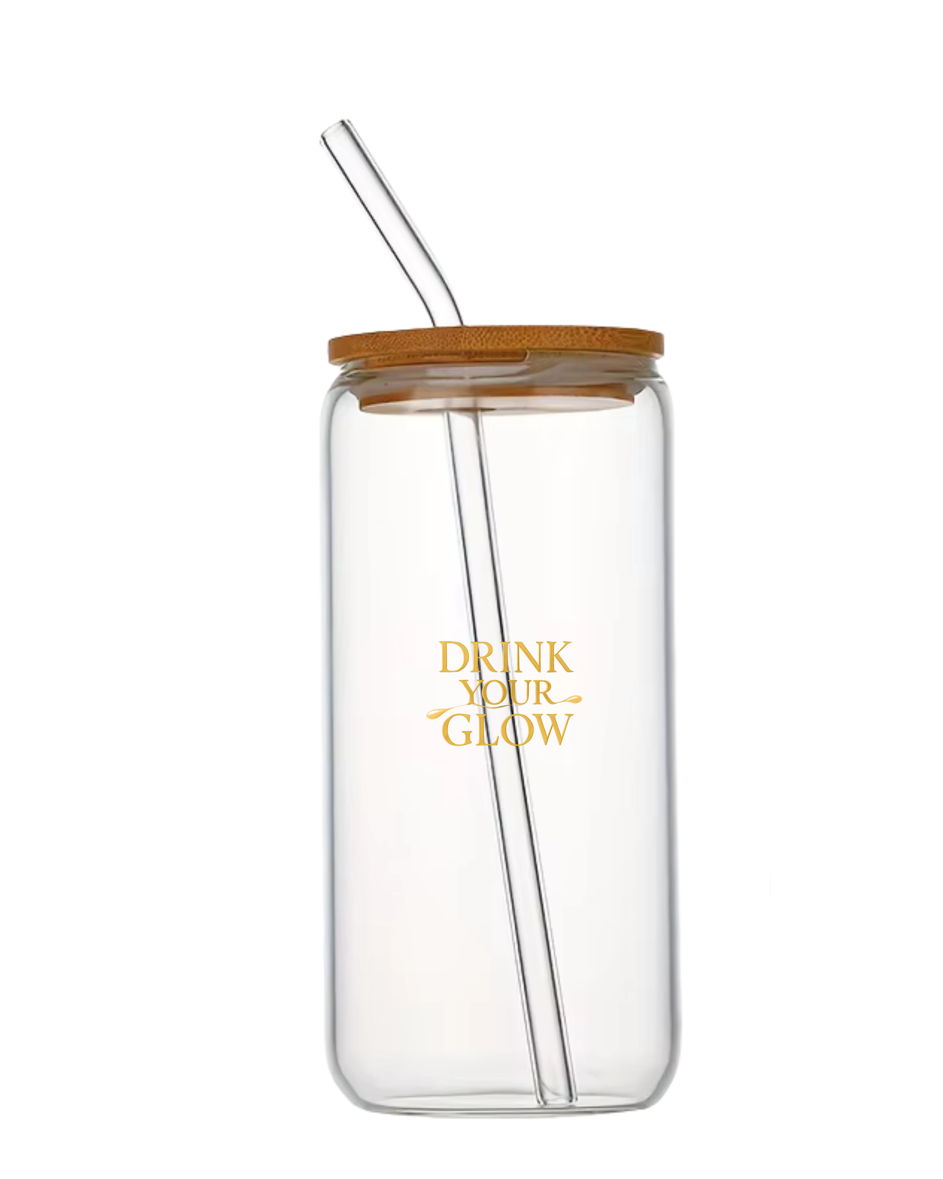conocerVaso de vidrio borosilicato con tapa de bamboo y bombilla de cristal. Reusable, lindo y práctico.
